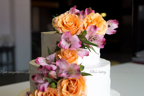 Сладкое воспоминание о прекрасном индонезийском острове. Цветовая палитра получилась невероятно тропической: от персиковых роз и нежно-розовых эустом так и веет теплом. Эффект от удачной колористики чувствуется даже на фото, но уверяем – вживую он еще лучше, еще красивее. И вкуснее!