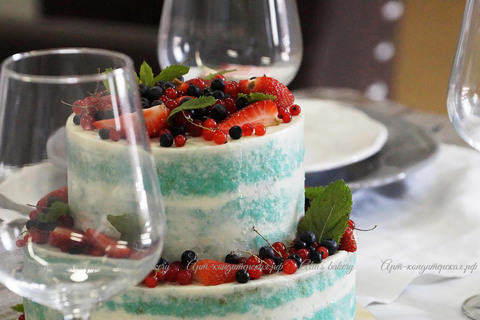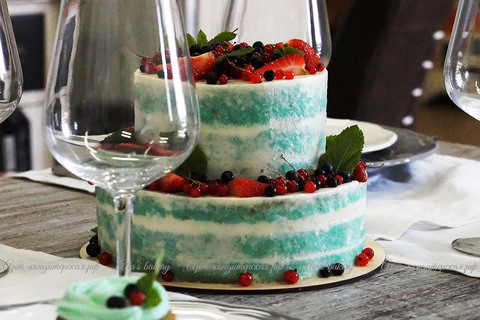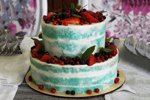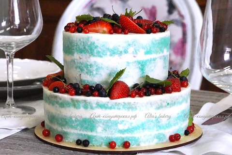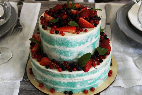 Ванильный бисквит и сливочная пропитка, крем на основе творожного маскарпоне и прослойка из лесных ягод