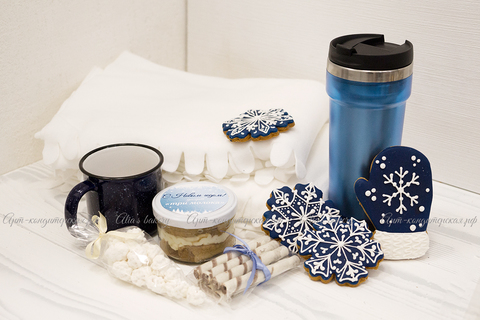С таким подарком невозможно замерзнуть даже самой холодной зимой. Согреет теплый и приятный на ощупь флисовый плед и вкусный чай/кофе/какао, которым можно насладиться дома или взять с собой на прогулку (в наборе есть красивая кружка и термостакан). Подарят дополнительное тепло и множество вкусностей: имбирные пряники с ажурным узором, вафельные трубочки со вкусом сгущенного молока, клюква в сахарной шубке. «Вишенка на торте» - большая свеча, которая добавит приятный свет и уют любой обстановке. Без преувеличений: этот сладкий набор - необходимость!