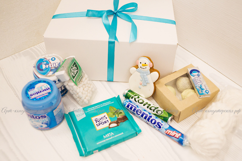 Освежающий и бодрящий набор сладостей в подарок на Новый год! Таким он является благодаря мяте, в честь которой и назван. Она здесь повсюду: в драже, в конфетах и жевательной резинке. Даже в плитке шоколада присутствует вкус мяты. Ее нет разве что в классических угощениях нашего производства – шоколадных трюфелях и воздушном зефире, но аромат задержался в них надолго.