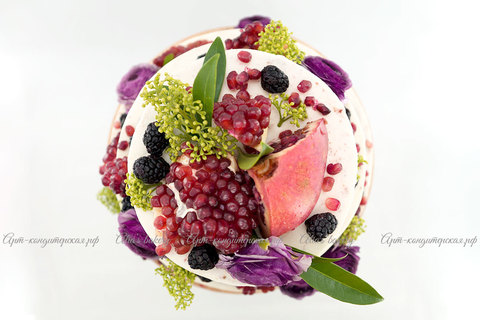 Создание голого торта - невероятно модное направление в последнее время. Многие кондитеры любят экспериментировать с этой техникой, и мы - не исключение. Слегка смазанные кремом вкуснейшие бисквитные коржи, сочный гранат и пышные бутоны цветочков в совокупности создадут шикарный десерт, который привлечет огромное количество заинтересованных взглядов!