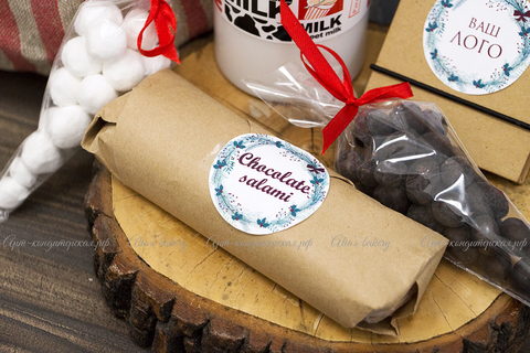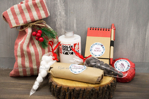 В этот Новый год Дед Мороз принес очень много сладких подарков! Да, набралось немало угощений, которые будут радовать в наступающем году. Шоколадная салями и арахис в шоколаде привнесут большую дозу счастья, а клюква в сахарной глазури и набор имбирных пряников станут отличной компанией вкусному чаю или кофе. Приятным дополнением будет гель для душа со сладким сливочным ароматом и экоблокнот для записи самых сокровенных желаний.