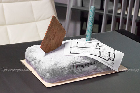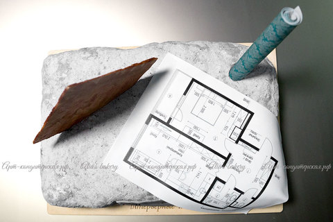 Творческий подход в создании вкусностей особенно ценят дизайнеры и архитекторы! Сладкий блок из бисквита и крема покрыт мастикой настолько искусно, что возникают сомнения - "это не камень? Это точно съедобно?". Дополняют образ многочисленные сладкие детали, без которых не справиться дизайнерам в их нелегком деле: чертежи, схемы, образцы обоев и плитки. Дегустирующие в восторге!