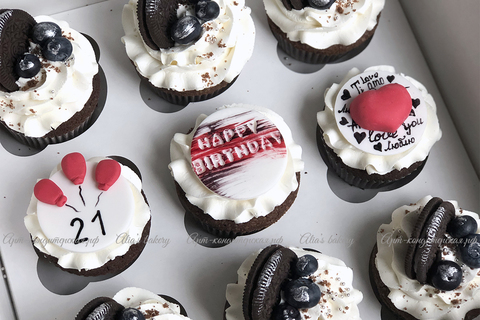 Капкейк - это полноценный мини - торт, заслуживающий отменного декора. Поэтому и украшать надо под стать настоящему крупному десерту. Рисунок выполняется пищевыми красителями на марципановом диске (марципан - это миндальная масса). С удовольствием и любовью сделаем кексы, украшенные на Ваш вкус различными узорами и надписями. Потрясающий вкус и сахарное наслаждение гарантируем!