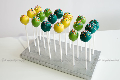 Детский праздник? Свадьба? День рождения? Представляем вам потрясающий десерт, который станет любимцем на любом празднике! Бисквитный шарик в глазури, украшенный кондитерской посыпкой и поданный в виде большого чупа-чупса, привлечет внимание всех приглашенных без исключения! И, конечно, порадует удивительным сладким вкусом! Это лакомство еще называют кексочупсом.