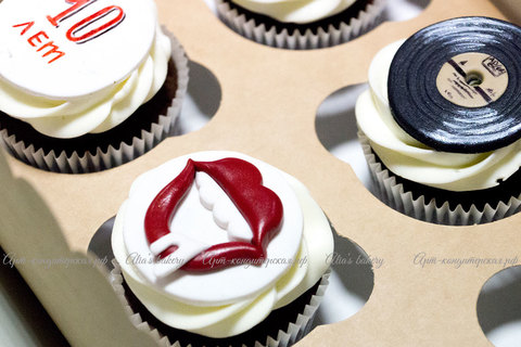 Сладкий подарок для музыканта или просто меломана. Нежные капкейки со сливочным кремом и съедобным лепным декором прекрасны на вкус. Внешний вид подкупает быстрее и сильнее начинки: мини-пластинки, логотипы и названия групп вызывают детский восторг и чувство счастья! Нужный эффект от подарка будет достигнут.