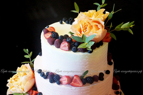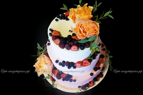 Все в лучших традициях исполнения кондитерских шедевров: легкий сливочный крем с переходом от нежно-розового к белоснежному, множество сочных ягод и фруктов и, безусловно, элементы декора в виде живых цветов создают невероятно вкусное угощение, буквально очаровывает. Такое название торт точно получил неспроста! Оригинальность ему придает сочетание цветов и ягод. Яркий акцент задают пышные розы, а нежный градиент розового крема придает легкость и романтичность! Ягоды, безусловно, дополнят всю композицию и сделают торт еще более аппетитным!