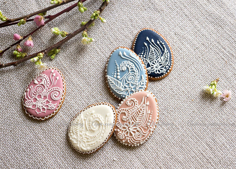 Изящная роспись глазурью завораживает своей красотой. Завитки, рюши, это удивительно тонкое плетение делает обычный пряник прекрасным подарком на Пасху. Абсолютно уверены: такое угощение захочется видеть каждый год в день любимого светлого праздника.