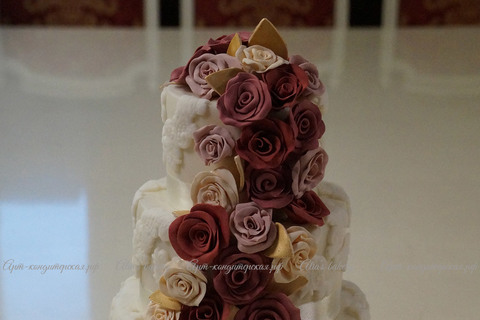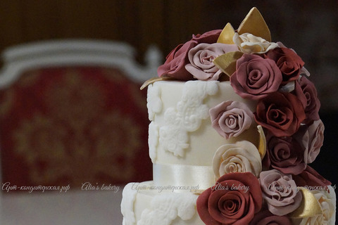 "Роскошный, величественный, грандиозный" - лучшее описание для нашего Императорского торта. Сочетание жемчужно-белой основы и благородного винного оттенка декора придает царственный вид свадебному лакомству. Дополняет красоту нежная бисквитная начинка с кремовой прослойкой, которая буквально тает во рту. Такой торт точно не останется незамеченным!