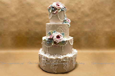 Наряду с чередой цветных свадеб, а также торжеств с нестандартыми решениями в плане организации,имеет место быть традиционная церемония бракосочетания и следующий за ней банкет, выполненный в классическом стиле. При создании композиции учитываются многие аспекты: обряды, традиции, конкурсы, даже наряды попадают под пристальное изучение! Важно учесть каждую деталь, так что не стоит забывать о главном угощении праздника. Мы предлагаем торт "Королевская свадьба":нежные оттенки, лепные цветы, кружева из крема - такое сочетание будет актуально всегда!