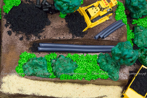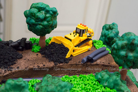 Всем трудолюбивым и ответственным работникам срочно раздать по кусочку этого шикарного торта! Серьезные мужчины строили северный поток, а наши нежные кондитеры с удовольствием поиграли в строителей сладостями! Фигурки машин на данном торте настоящие - они служат отличным напоминанием о прекрасном торте. Возможно изготовление съедобных фигурок. Фигурки оплачиваются дополнительно - уточняйте у менеджера!