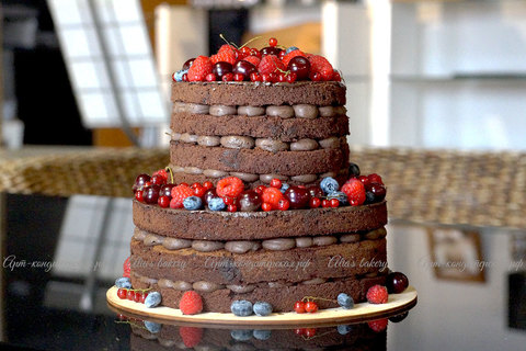 К привычным открытым бисквитным коржам мы добавили приятный сливочный крем шоколадного цвета и получили интересную композицию, которая выглядит настолько аппетитно, что не требует особого декора. Но, чтобы добавить десерту игривости и легкости, украсили ароматные ярусы сочными летними ягодами. Результат превзошел все мыслимые ожидания!