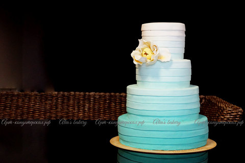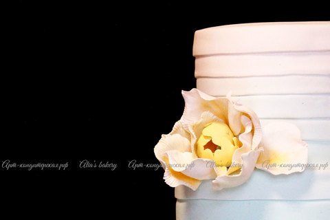 Когда не хочется обрамлять торт большим количеством декора, но есть желание видеть изящный десерт, "Соблазн" станет отличным выбором. Мастичная классика, представленная освежающим бело-бирюзовым градиентом и роскошным бутоном экзотического цветка, манит своей красотой и вкусом.